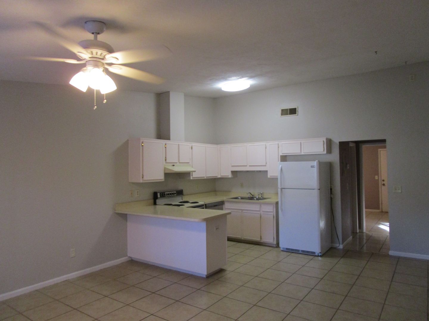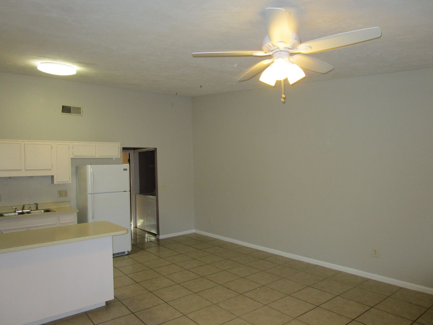 Built in 1984 and just under 800 sq. ft, this home lives and feels much larger. An adorable one-bedroom apartment with ample space throughout. Tile flooring throughout makes cleaning a breeze! Large great room with vaulted ceilings and ceiling fan, an open well-equipped kitchen with all white cabinets, and a breakfast bar. The dining area is off to the right. The large hall bathroom is right across from the laundry room, washer & dryer included. Spacious bedroom with plenty of closet space and a back door which opens out to a screened back porch and a HUGE privately fenced back yard, perfect for those with pets, or those who crave a little privacy outdoors. Small adult pet allowed with fee. Sorry, no indoor smoking allowed here.
